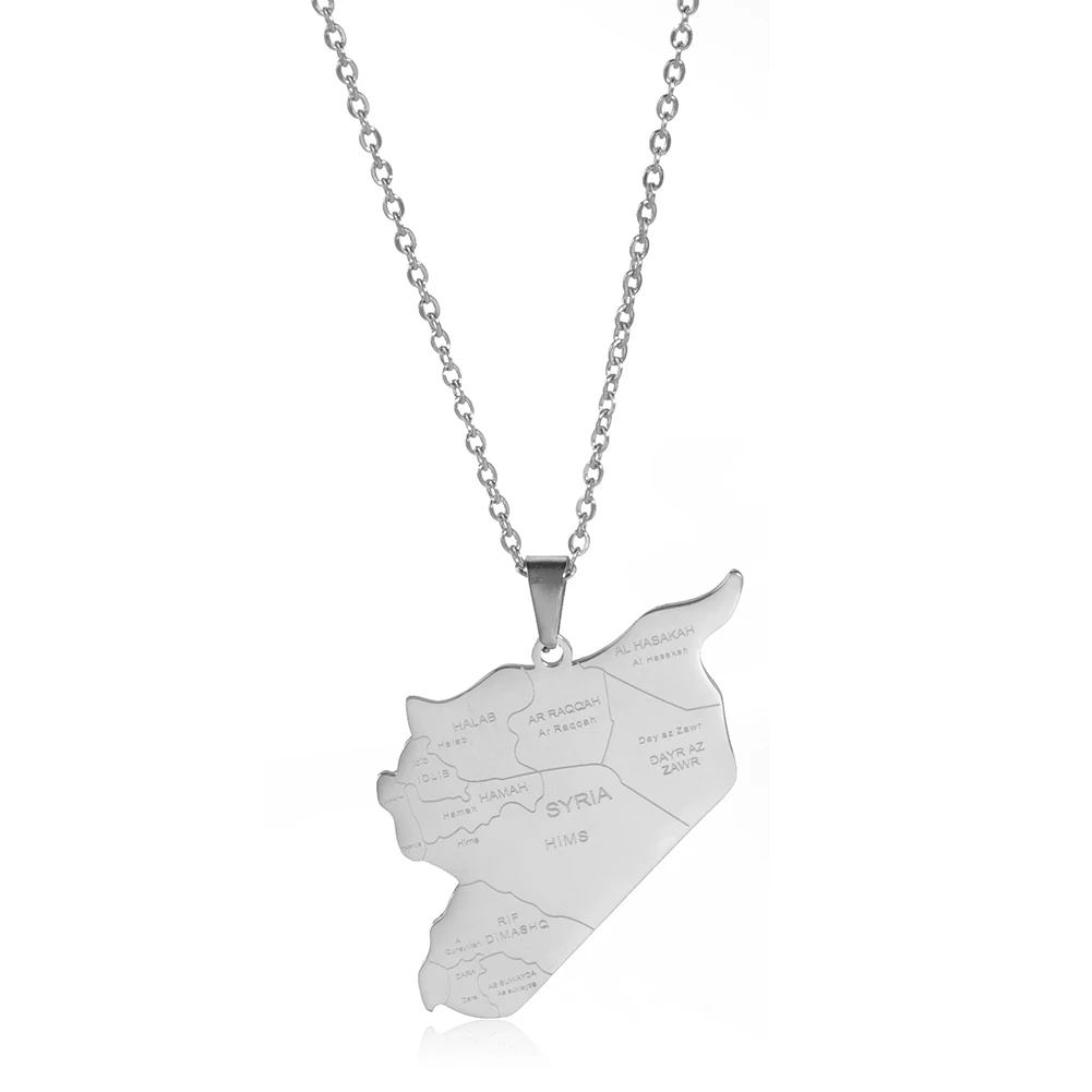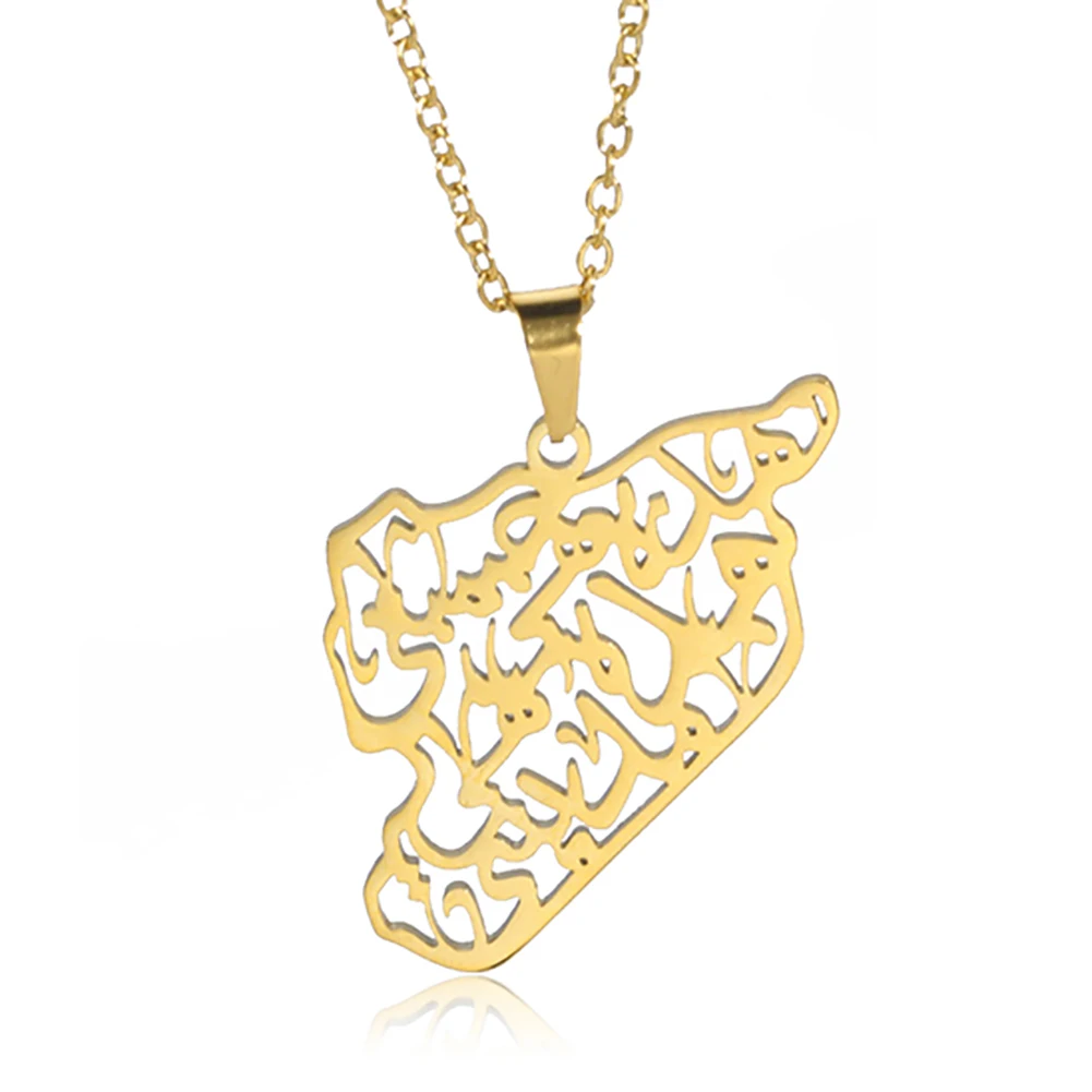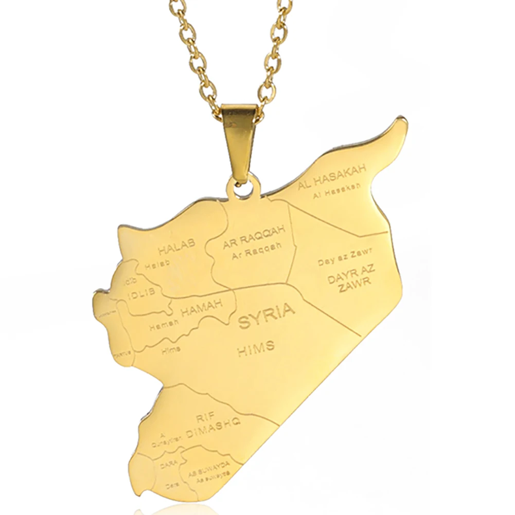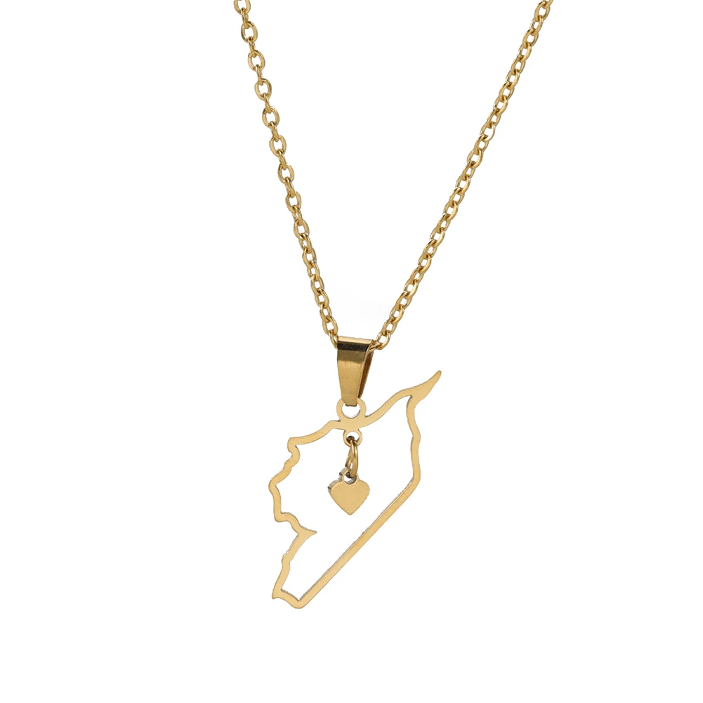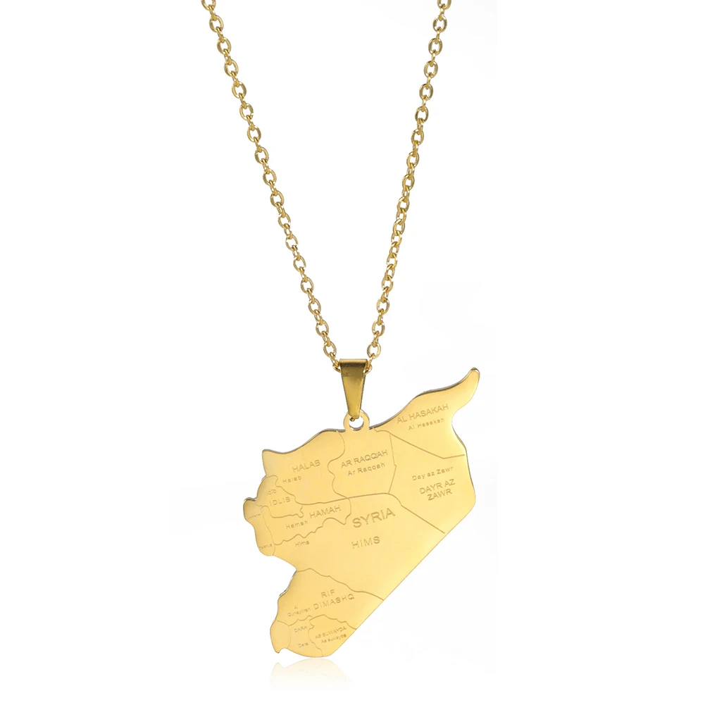Kkjoy Stainless Steel Syria Map Flag Pendant Necklaces for Women Men Gold Color Charm Syrians Map Pendant Jewelry Wholesale New