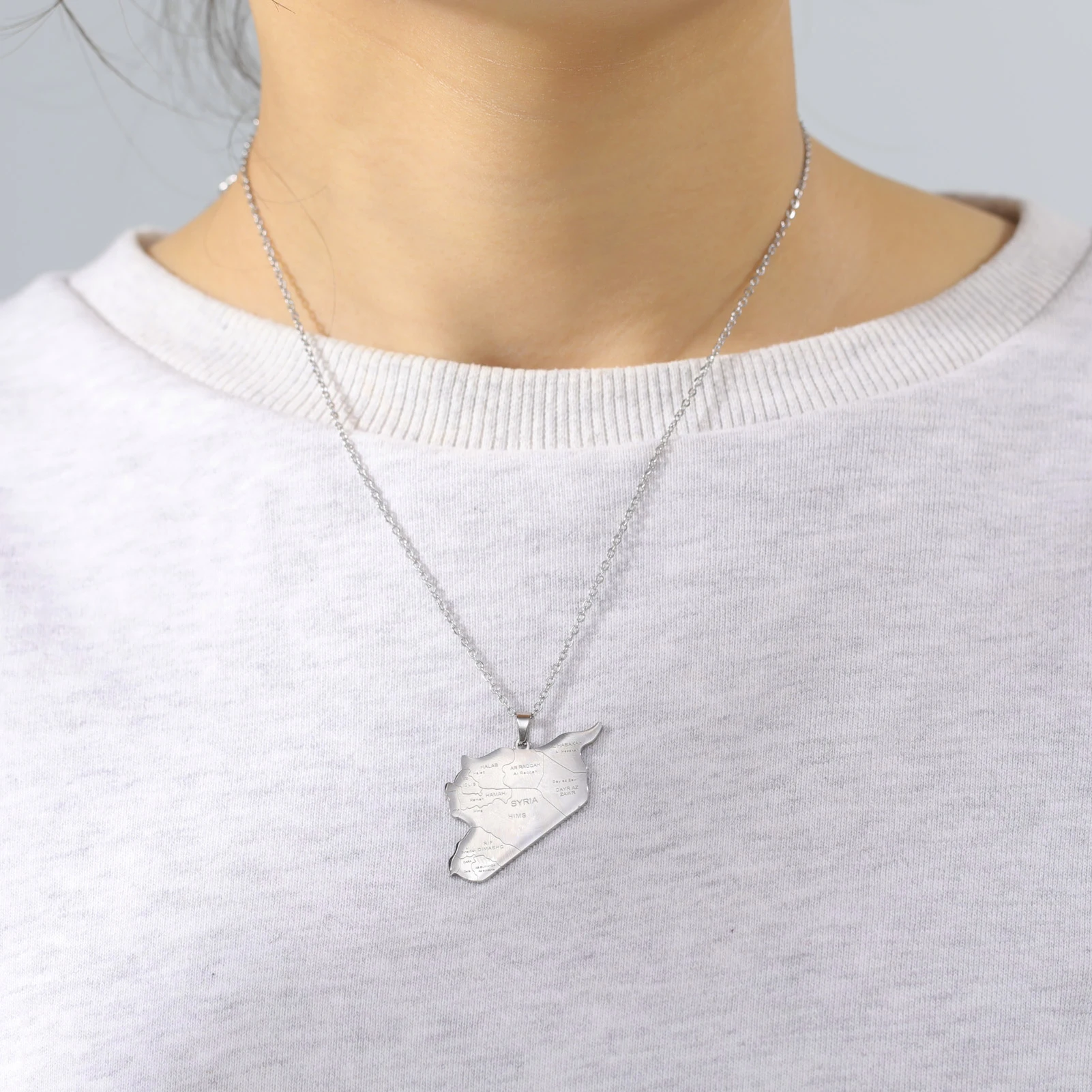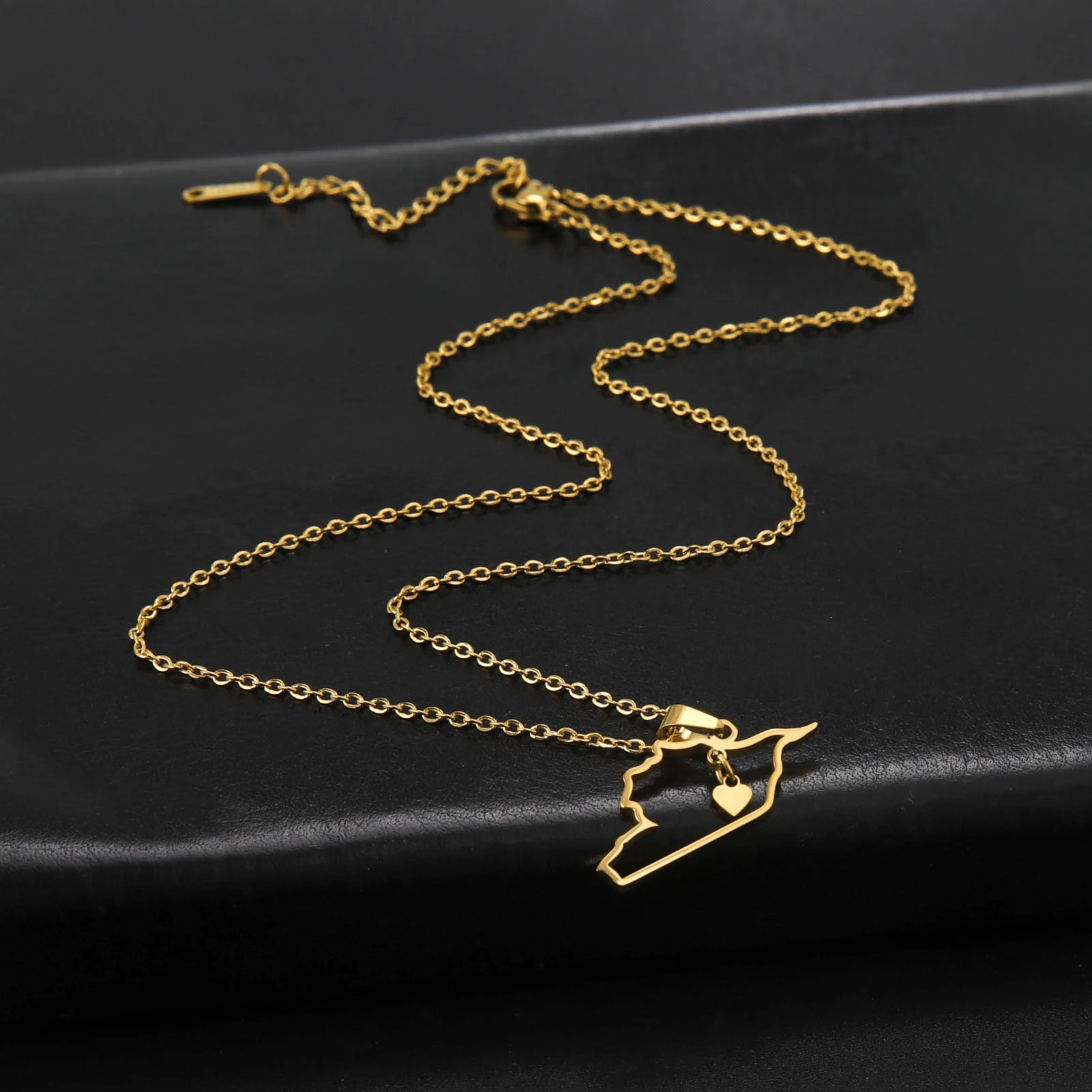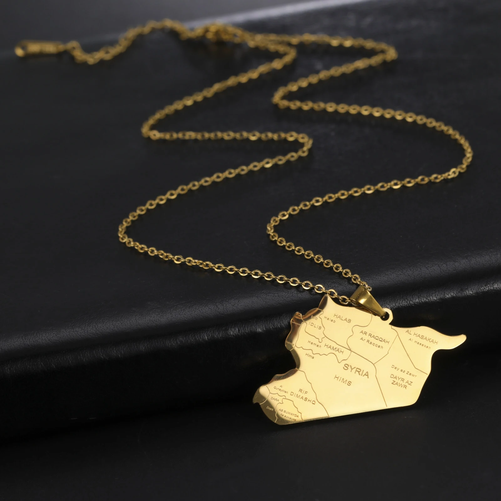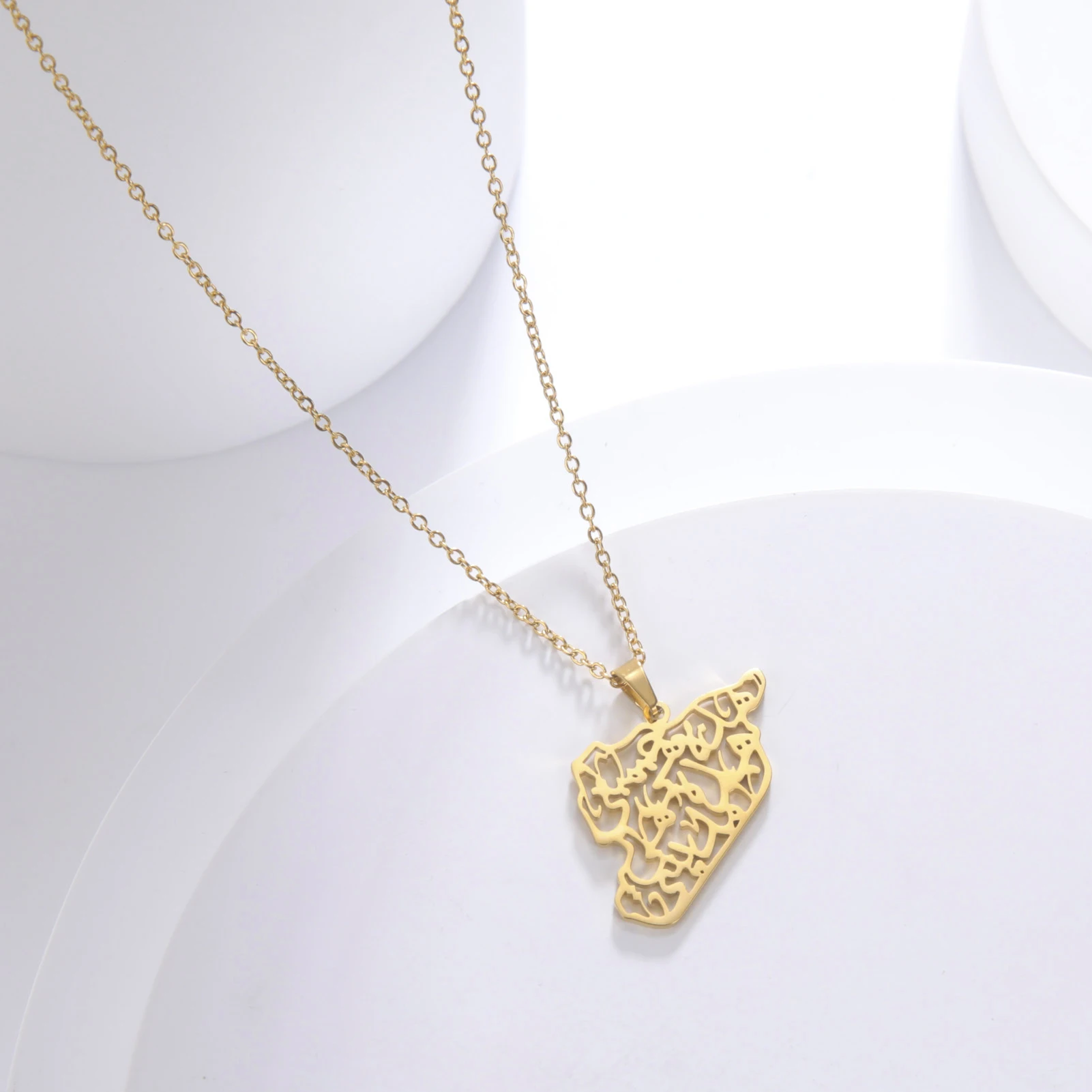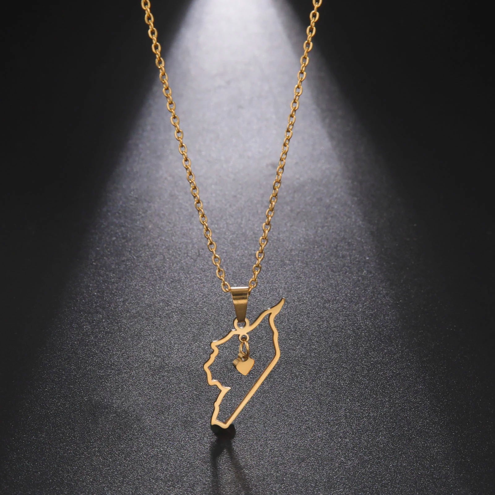 Kkjoy Stainless Steel Syria Map Flag Pendant Necklaces for Women Men Gold Color Charm Syrians Map Pendant Jewelry Wholesale New